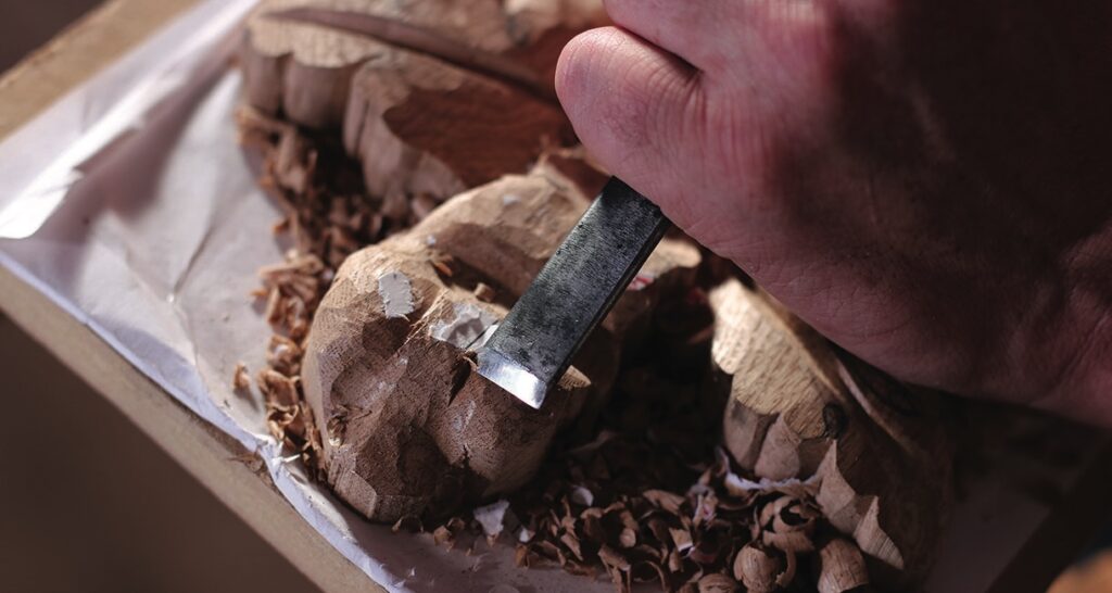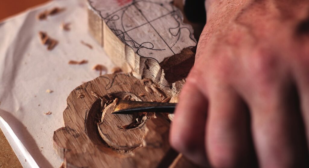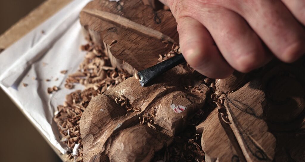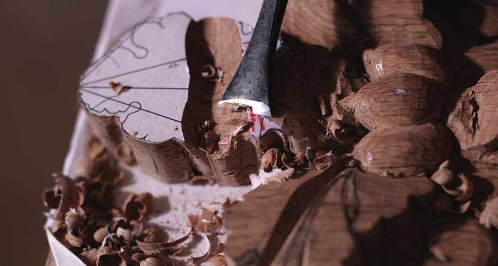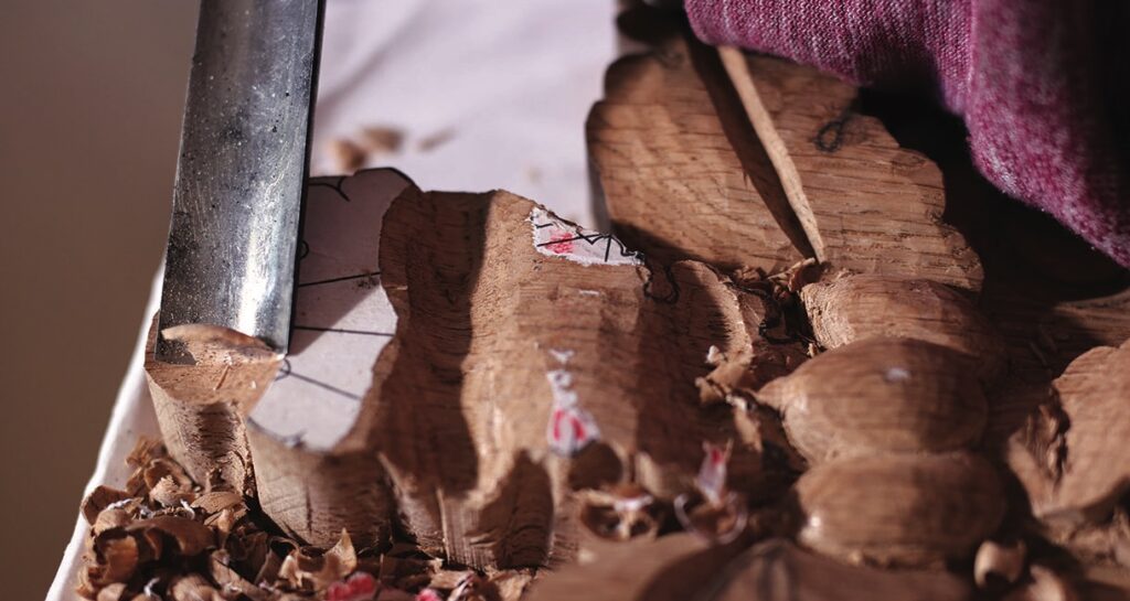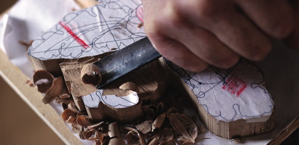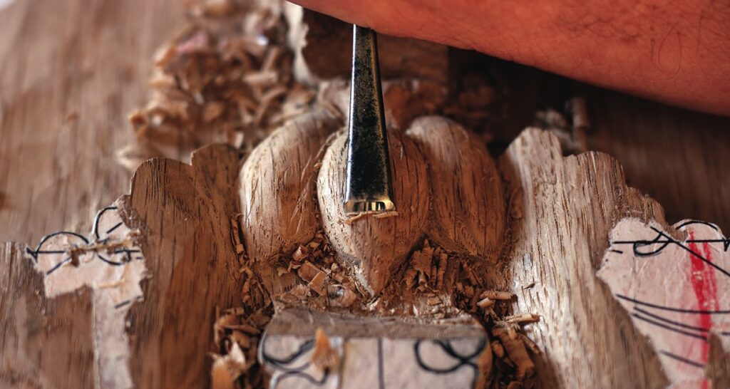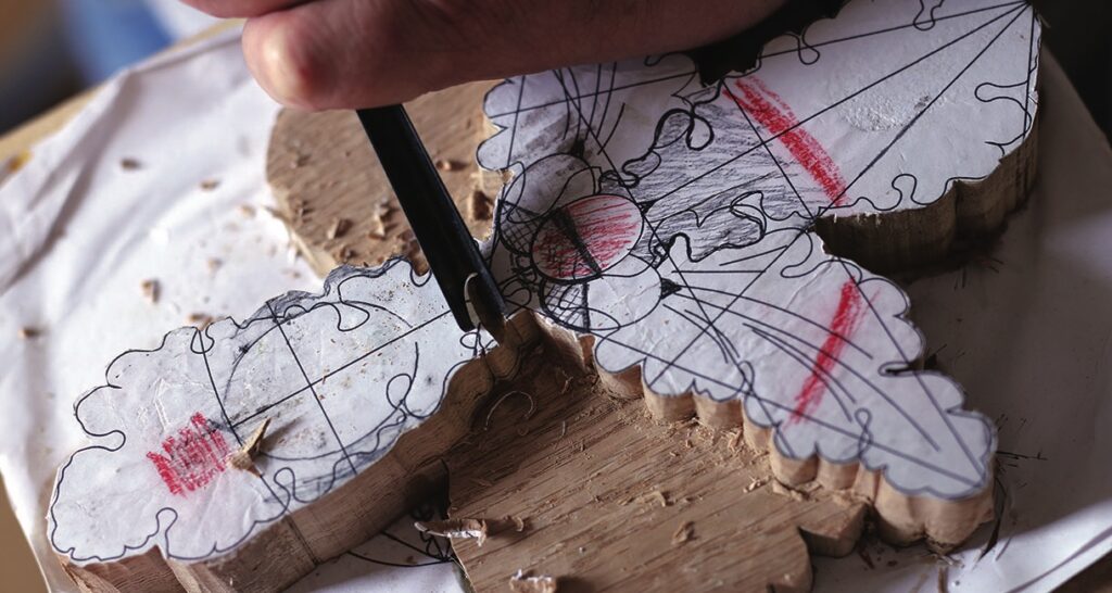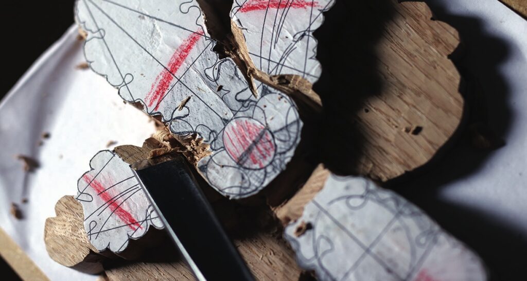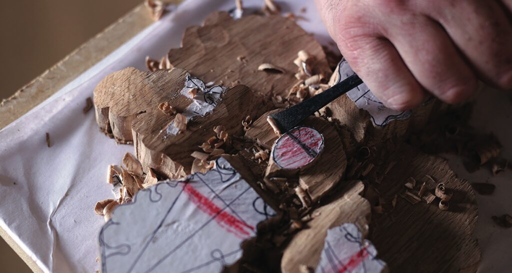 The creative process of wood carving is not only a manual physical one, but more challengingly, it is an inner emotional process of artistic feeling. When one embarks on a creative endeavour one comes face to face with self-reflection and inevitably self-doubt. As the edge tools penetrate the wood, it is as if one is diving into unknown waters. To fully immerse oneself in the experience one must embrace this uncertainty as the essence of the art. From this vulnerable state comes an opportunity for one’s own self-expression while creating something genuine and true.