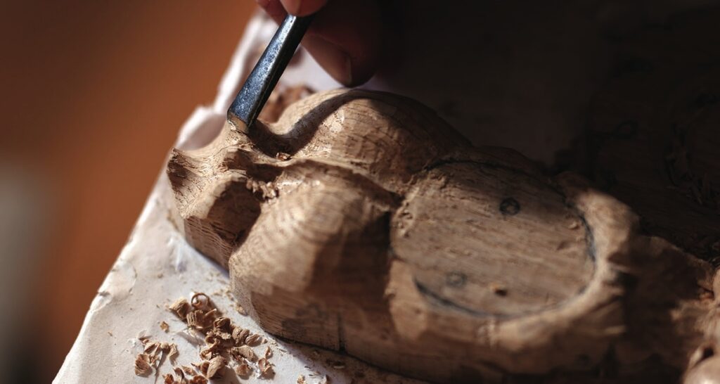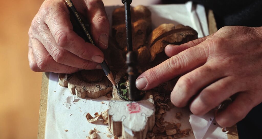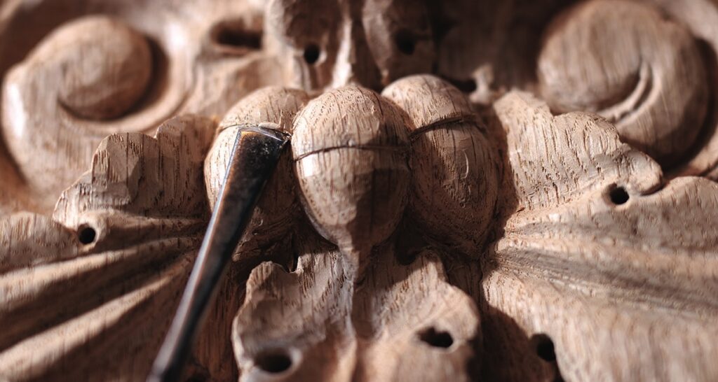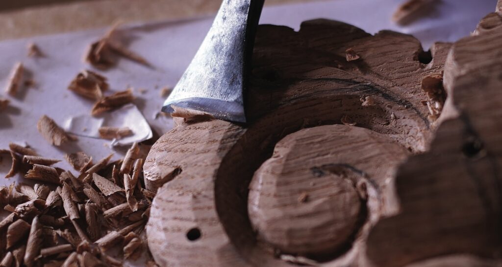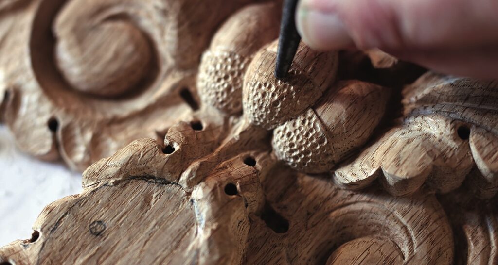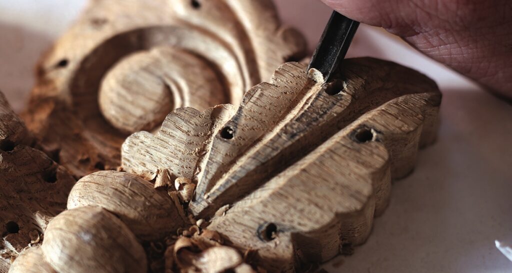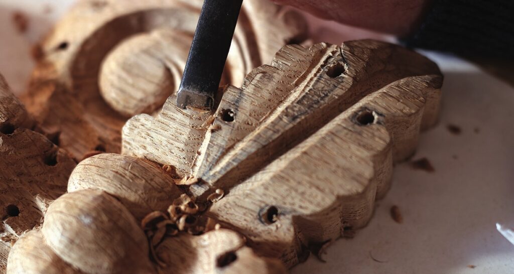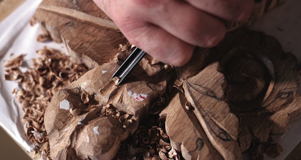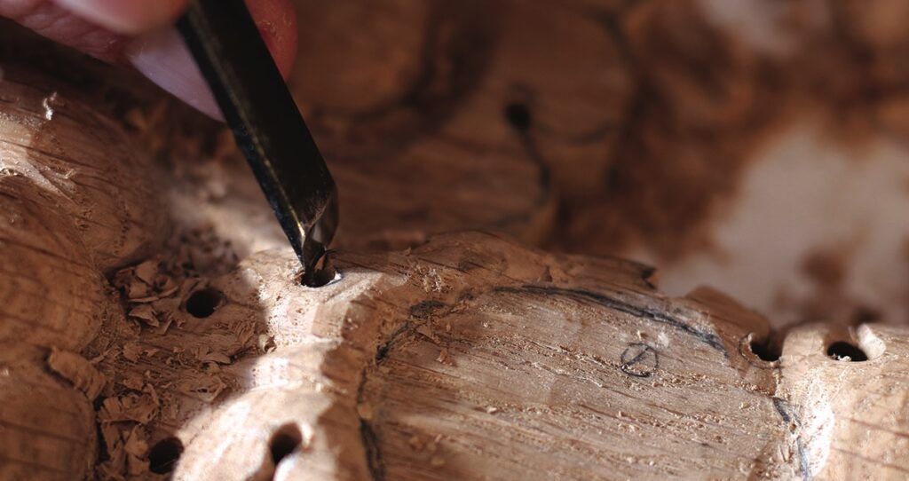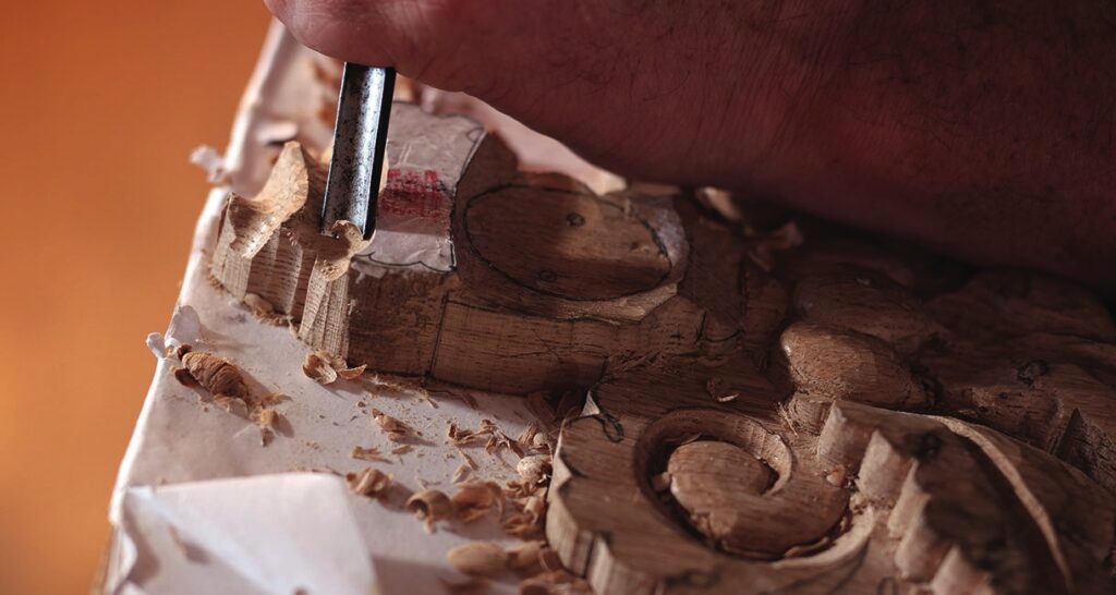 The creative process of wood carving is not only a manual physical one, but more challengingly, it is an inner emotional process of artistic feeling. When one embarks on a creative endeavour one comes face to face with self-reflection and inevitably self-doubt. As the edge tools penetrate the wood, it is as if one is diving into unknown waters. To fully immerse oneself in the experience one must embrace this uncertainty as the essence of the art. From this vulnerable state comes an opportunity for one’s own self-expression while creating something genuine and true.
