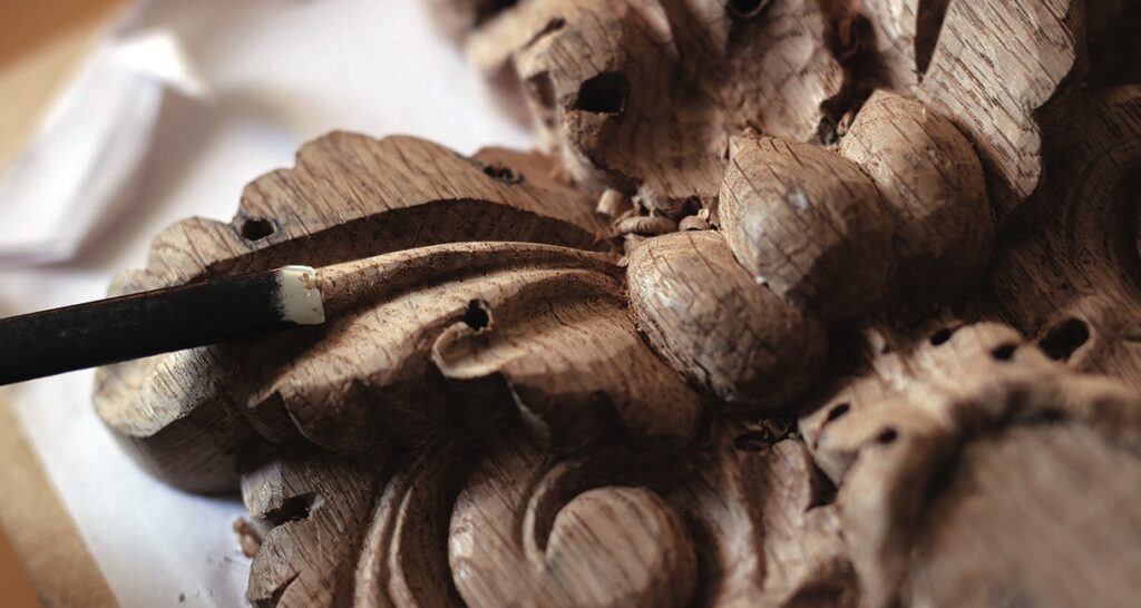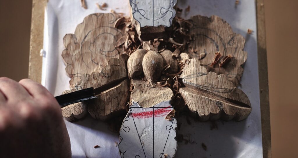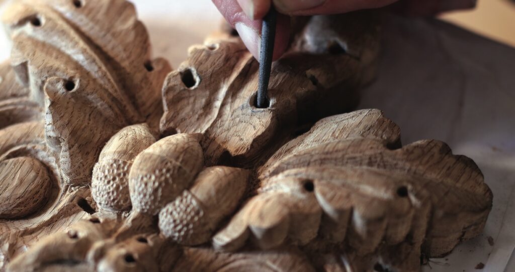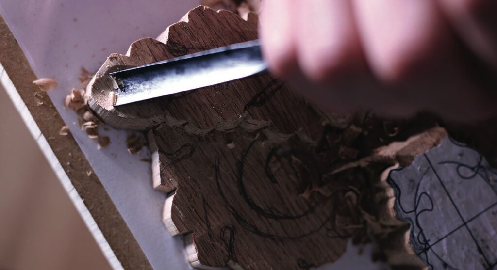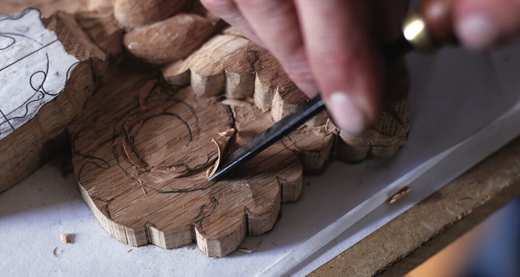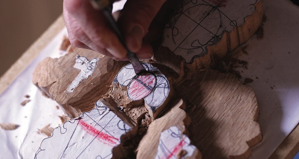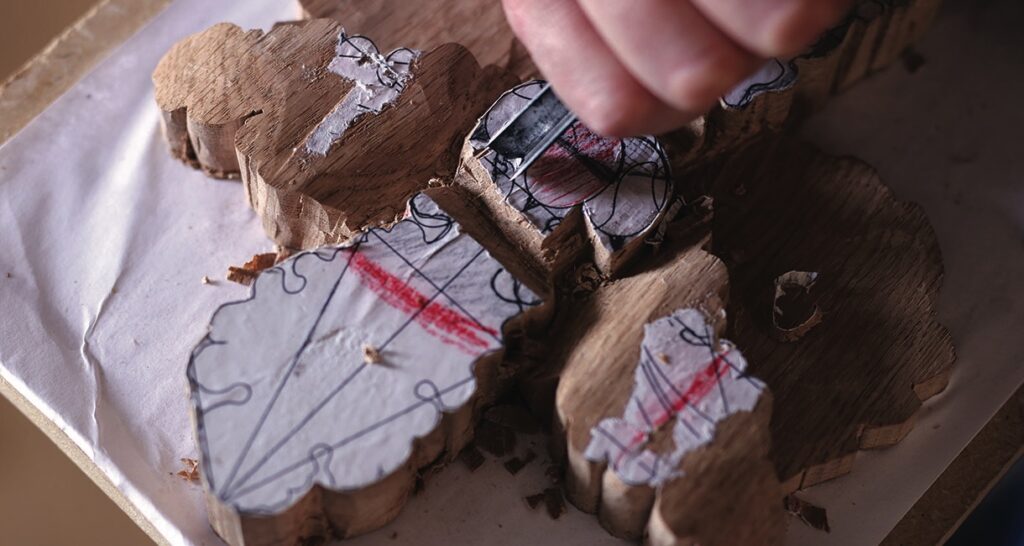 Mark Ivan Fortune carves an unusual decorative oak coat hook
