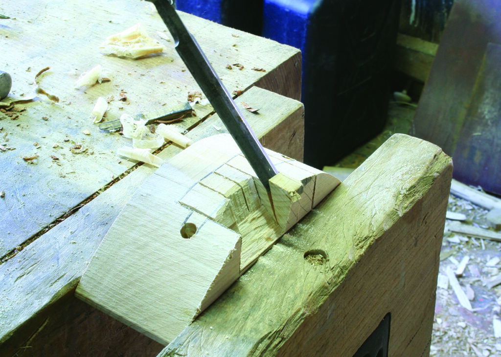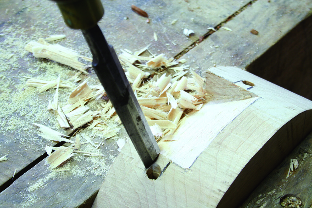 13. Knock away most of the waste using the chisel and mallet. Use the chisel to pare away the rest of it. You need a smooth surface where the shavings will travel away from the body, as shavings will catch on any rough areas and quickly clog up the travisher.