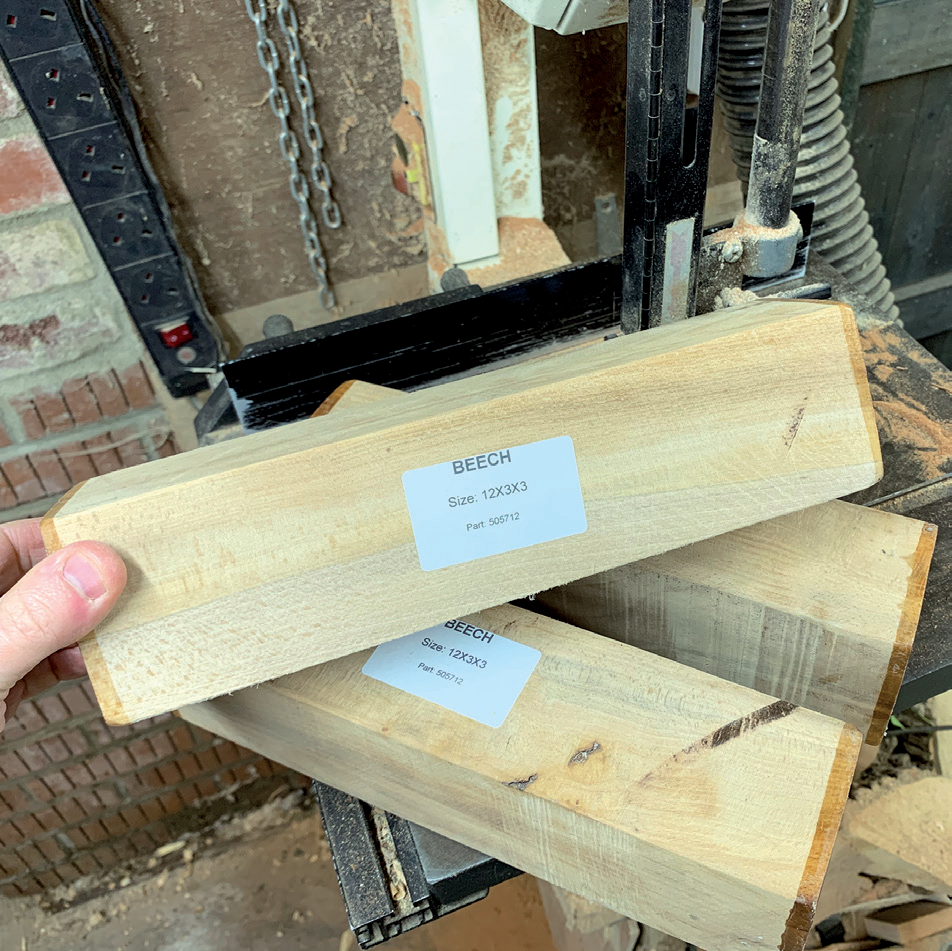 1. Probably a good place to start would be with the timber we’re going to use. It’s good to use something strong and hard when thinking about the mallet heads and the balls. It’s also important to pick timber with the same density, so I’ve decided to use beech for both and opted for pre-cut blanks for ease. I’m going to use two of the pieces for the mallet heads and the other for the balls
