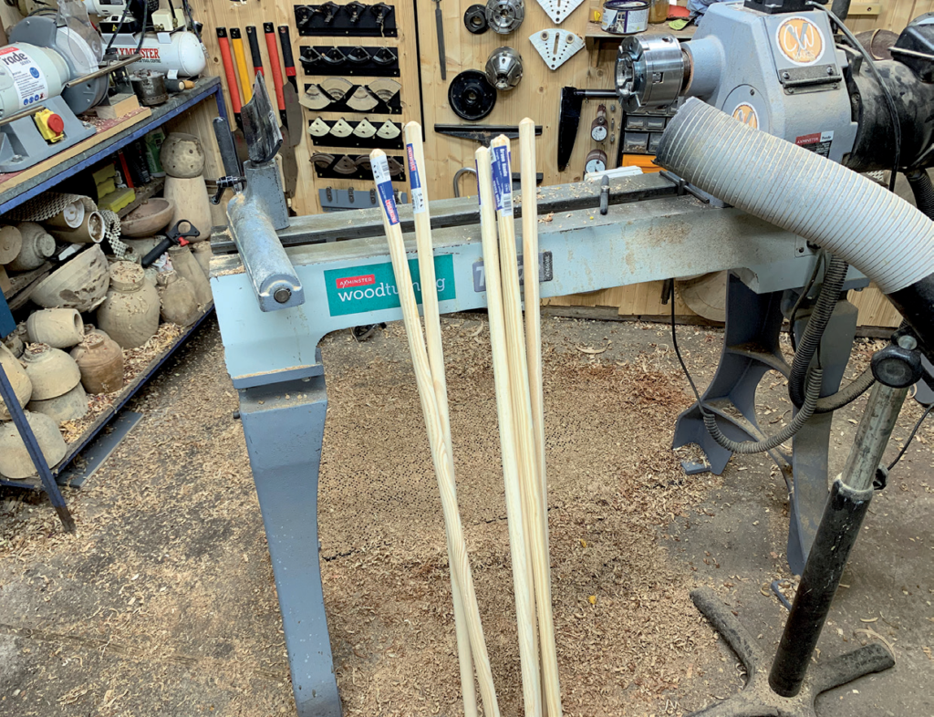 35. Let’s turn our attention to the scoring sticks. These are the sticks to be struck to signify the winner of the game and are very simple to make. Once again, I’ve used one of the broom handles for this part, simply cutting one in half at 500mm long