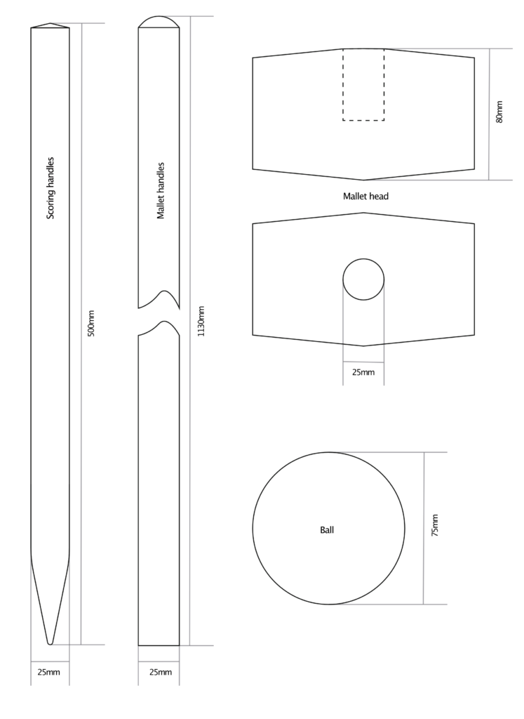 Before we start looking at the project we’re about to embark on, I’m going to hold up my hands and admit that I’m no authority on the rules or history behind the game of croquet. What I do know is that it’s great fun on a lazy sunny afternoon to be enjoyed with the family while the barbecue is cooking. Let’s look at the rules briefly first though, this will give us an idea of the parts required. We are going to make a full set for four players so this means four mallets, four balls, six hoops and two scoring pegs. Each player has one mallet and one ball. Alternatively, you can have two players with two balls as you make your way through six sequenced hoops and finally to the scoring stick. That’s a lot of kit to make! This is a great little project and much easier than it first looks.