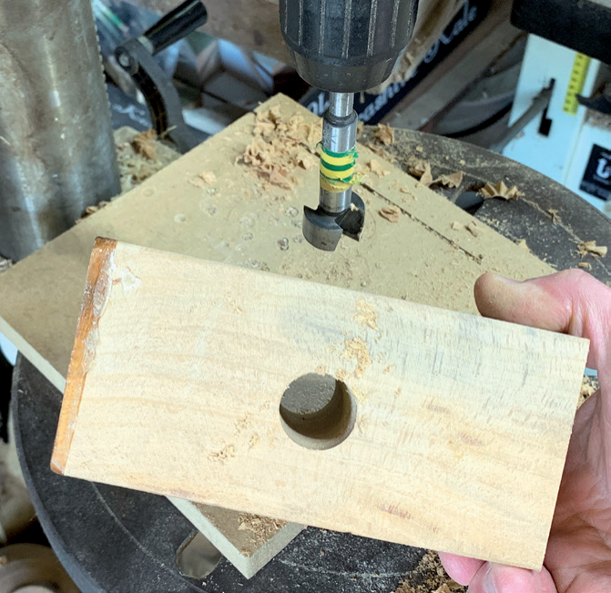 6. Set your drill up for the operation first by making sure you have the depth to drill all the way through your blank, you have enough drill exposed and the blank can fit under the drill bit. Not all pillar drills have enough capacity, so you may be forced to stop the drill halfway through the cut to adjust the drill