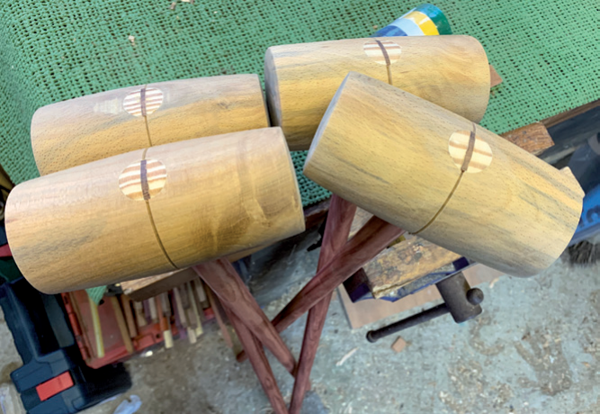 18. Here’s what the mallet should look like once the glue has completely dried. Although the handles have had a coat of stain there is no actual finish on either handle or mallet head. We still need to finish the join and do some sanding before that stage