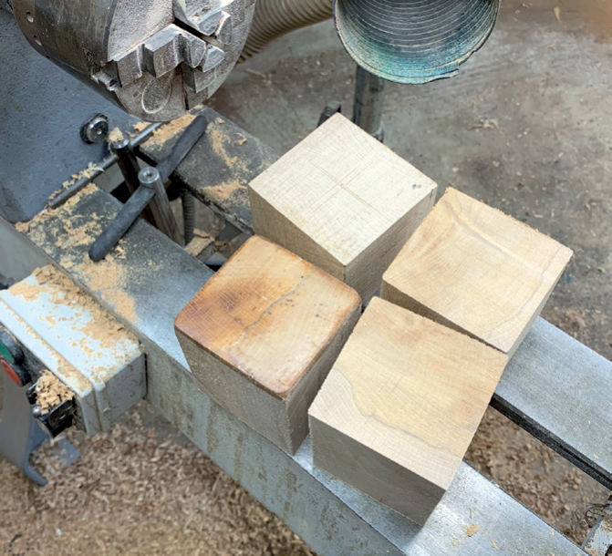 24. Like the mallets, the best place to start when making the balls is deciding on the timber to be used. And again, it’s best to stick with the same timber as the mallet heads to match density, so I’ve cut our pieces of beech into 85 x 75 x 75mm blanks