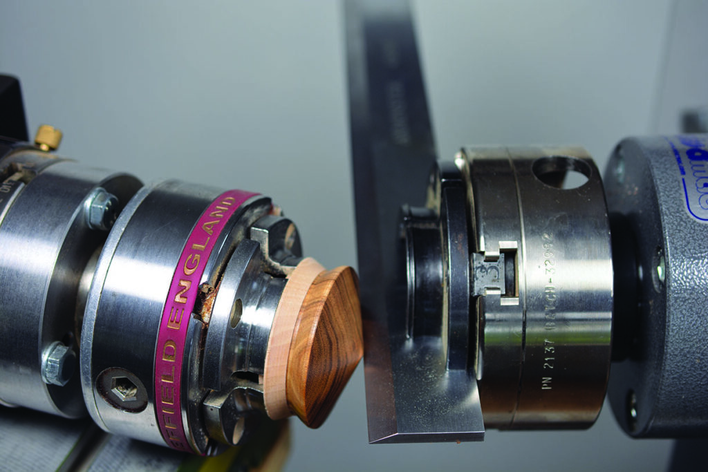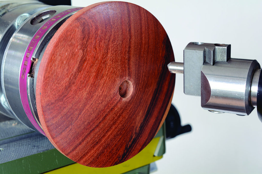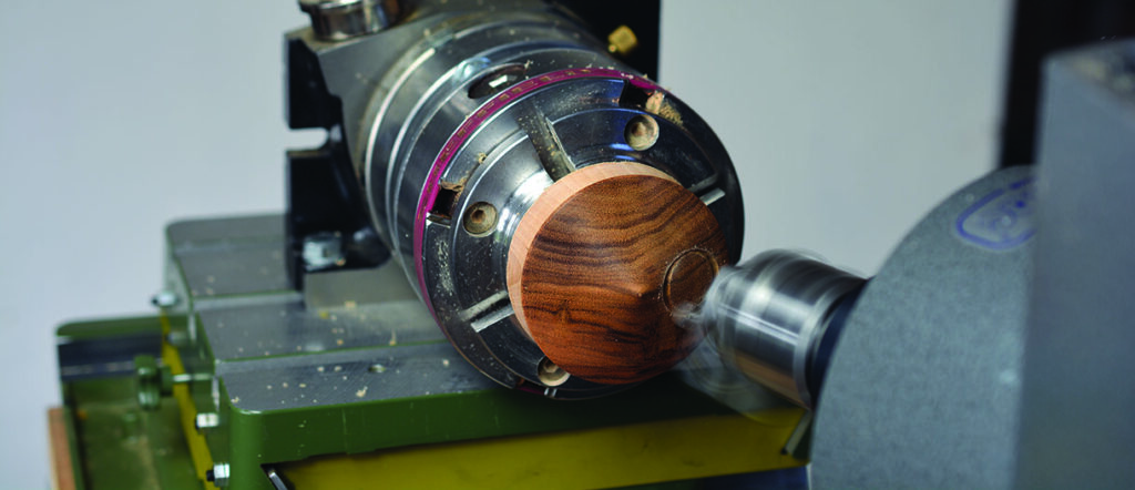 It is important that this pattern is mastered before moving on to others. Most skills and experience are built up by repetition, and so it is with ornamental turning. By varying the increments, depth of cut and shape of work through experimenting, not only will you be surprised by the patterns produced – it will all add to your skill set, and build confidence and experience. This includes an understanding of how all the elements combine to make pleasing results. In short, what works, and what doesn’t! First, start by sliding and securing the compound unit to the cutter, making the fine adjustments with the X or Y knobs to advance the lid to almost, but not quite touching the cutter.