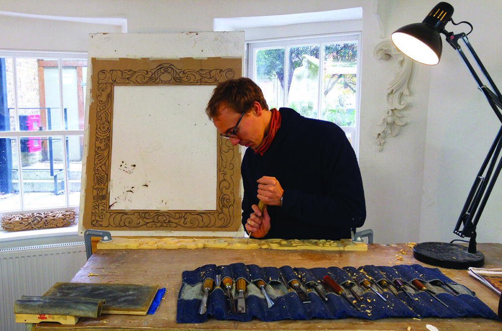 As Borys has more than five years’ experience of working in a high-end antique picture framer’s, he was the perfect match for the project. His frame is a modern take on the 17th-century English auricular style and will be carved in beautiful Quebec pine and gilded to finish.