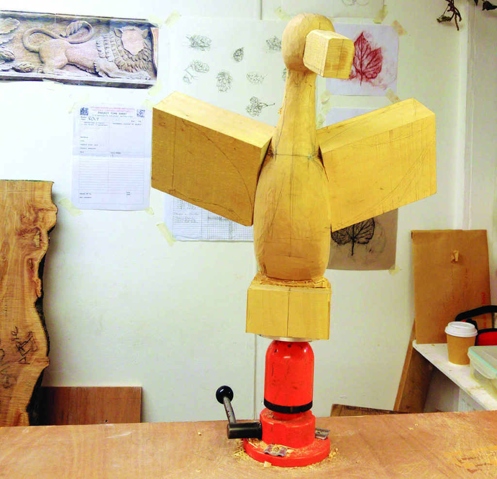 The biggest challenge I’ve faced with this project has undoubtedly been creating the delicate, twisting tail feathers that support the body of the bird without making them too fragile or difficult to carve.