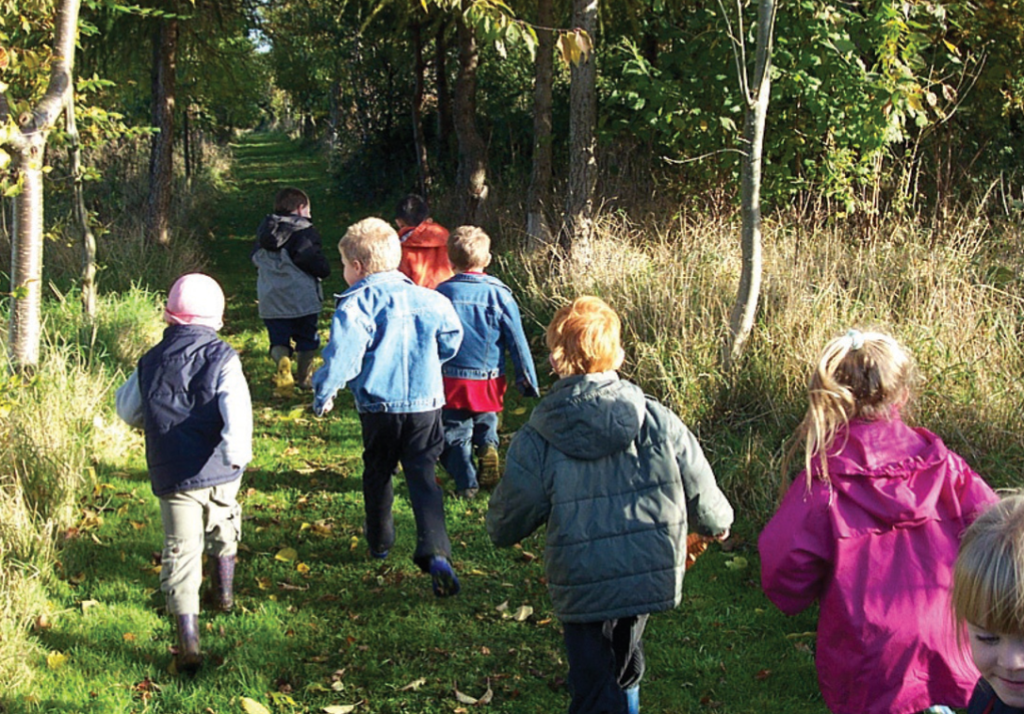 Young children enjoying the freedom of the woodland and the great outdoors