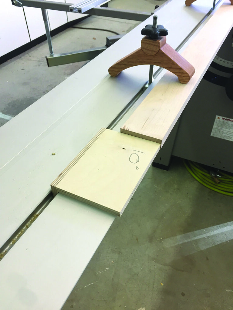 The ‘go-no-go’ jig is a simple chunk of Baltic birch plywood with a glued-on cleat that fits snugly in the slot of the slider part of the tablesaw. Of course, make it oversize, then run it through the saw blade to establish the exact location of the left side of your blade. I made a larger blank that I crosscut, and saved the fall off for later use. Once I have the current blade sharpened, I’ll need to crosscut a new jig. Or if I switch blades, the kerf could be different (more than likely) so I currently have one of these jigs for each of the two different-sized blades that I use on this saw.
